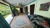 The property spans 600 m² and includes a permaculture garden, greenhouse, and direct access to a river. Grow your own food year-round with established fruit trees and vegetables including bananas, coconut, jackfruit, ackee, papaya, tomatoes, cucumbers, herbs like basil and rosemary, and superfoods like katuk.